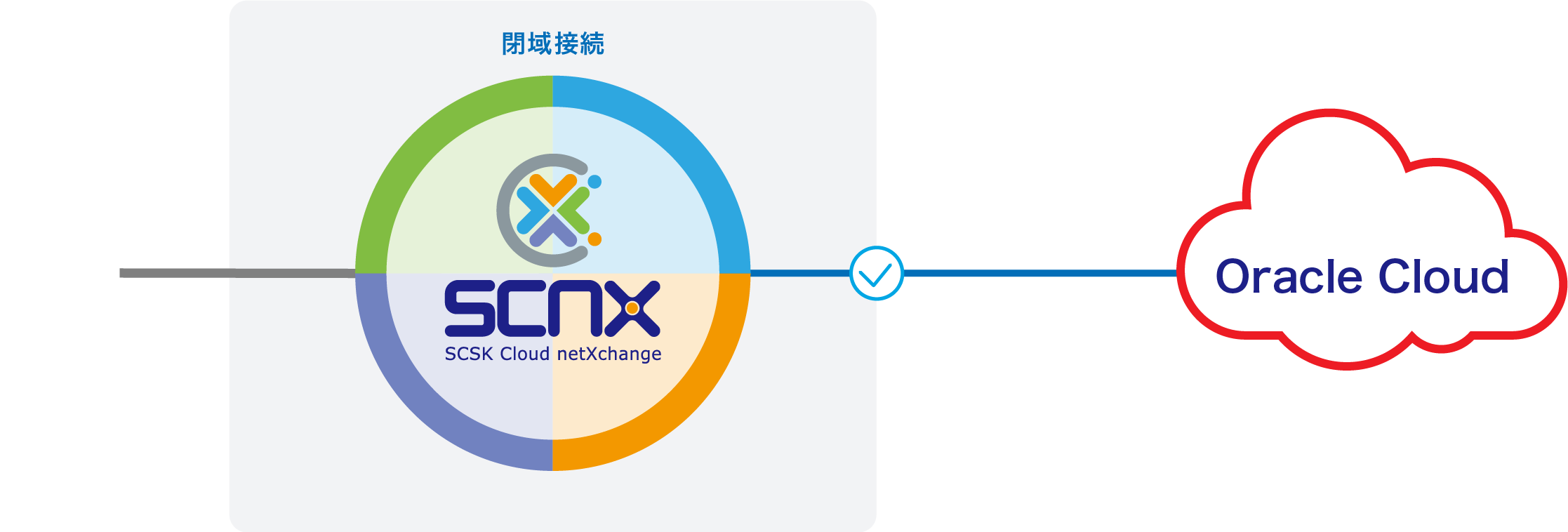 SCSKは、OCI(Oracle Cloud Infrastructure)とオンプレミスのインフラストラクチャ間でプライベート接続を実現するOracle Cloud Infrastructure Fast Connectの提供パートナーです。マルチクラウド接続サービスSCNXのラインナップの一つとして、印西キャンパス内にある接続点からOCIへセキュアかつ低遅延で接続できる「SCNX for Oracle Cloud」を提供しています。