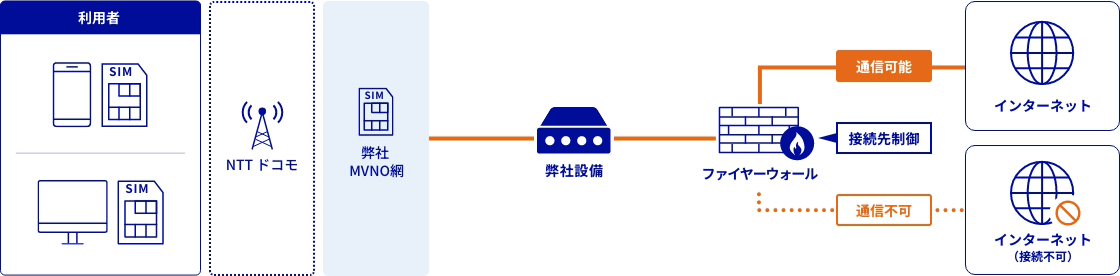 法人専用モバイル回線とSCSKのインターネットバックボーンを組み合わせたフルMVNOサービス