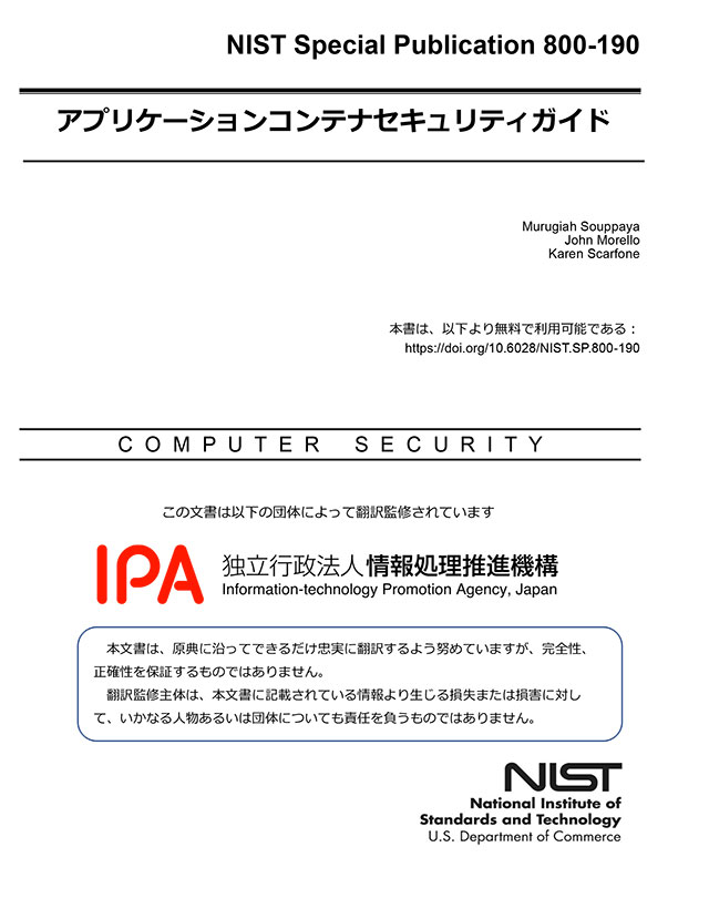 SP=Special Publication. コンテナを使用する上でのセキュリティの考慮ポイント
