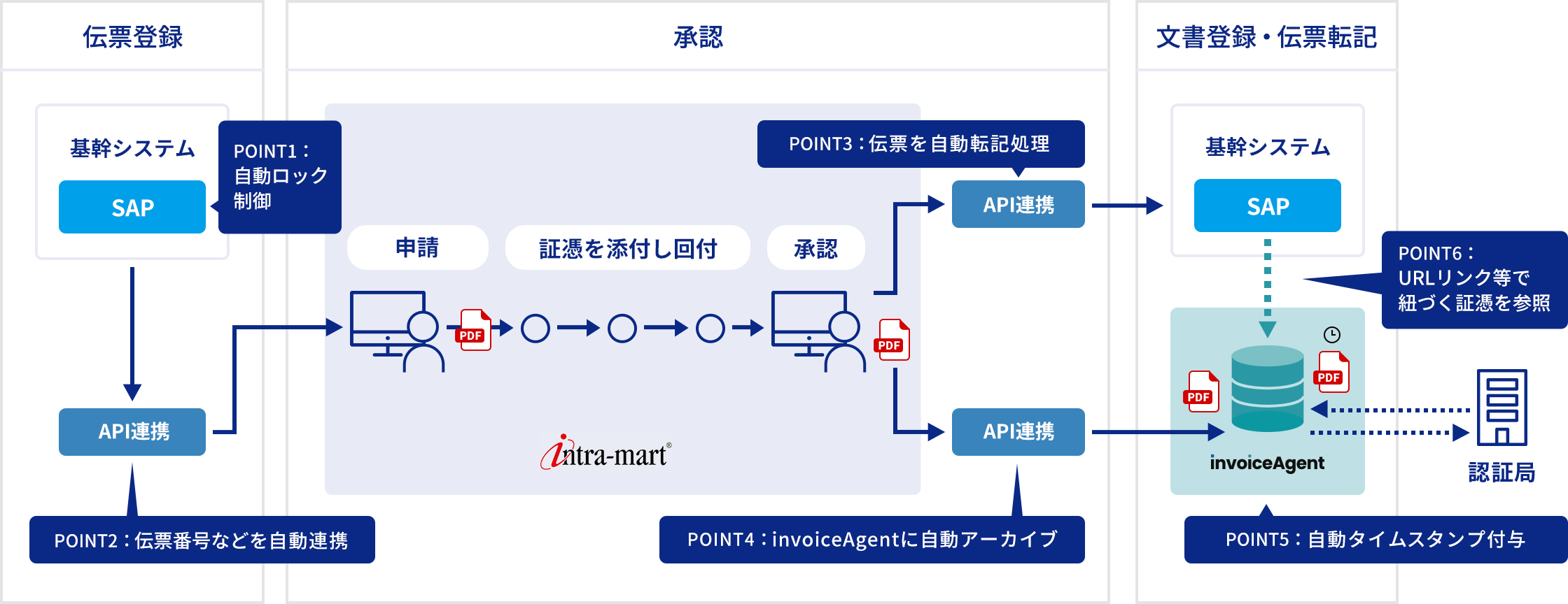 - POINT4:承認完了時に証憑をinvoiceAgentに自動アーカイブ