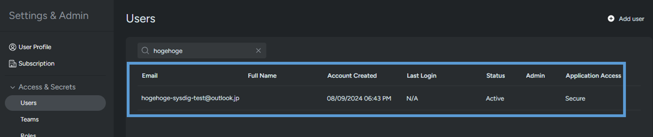 今回はSysdig Secureにユーザーを追加し、各機能へのアクセス権限を付与してみます。