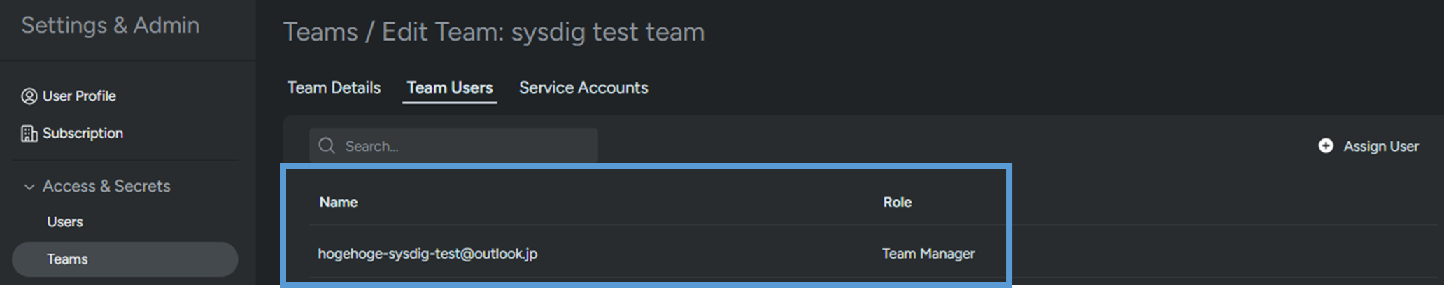 ユーザーにアクセス権限を付与するためには、チームへの参加が必須です(Sysdigの仕様です)。