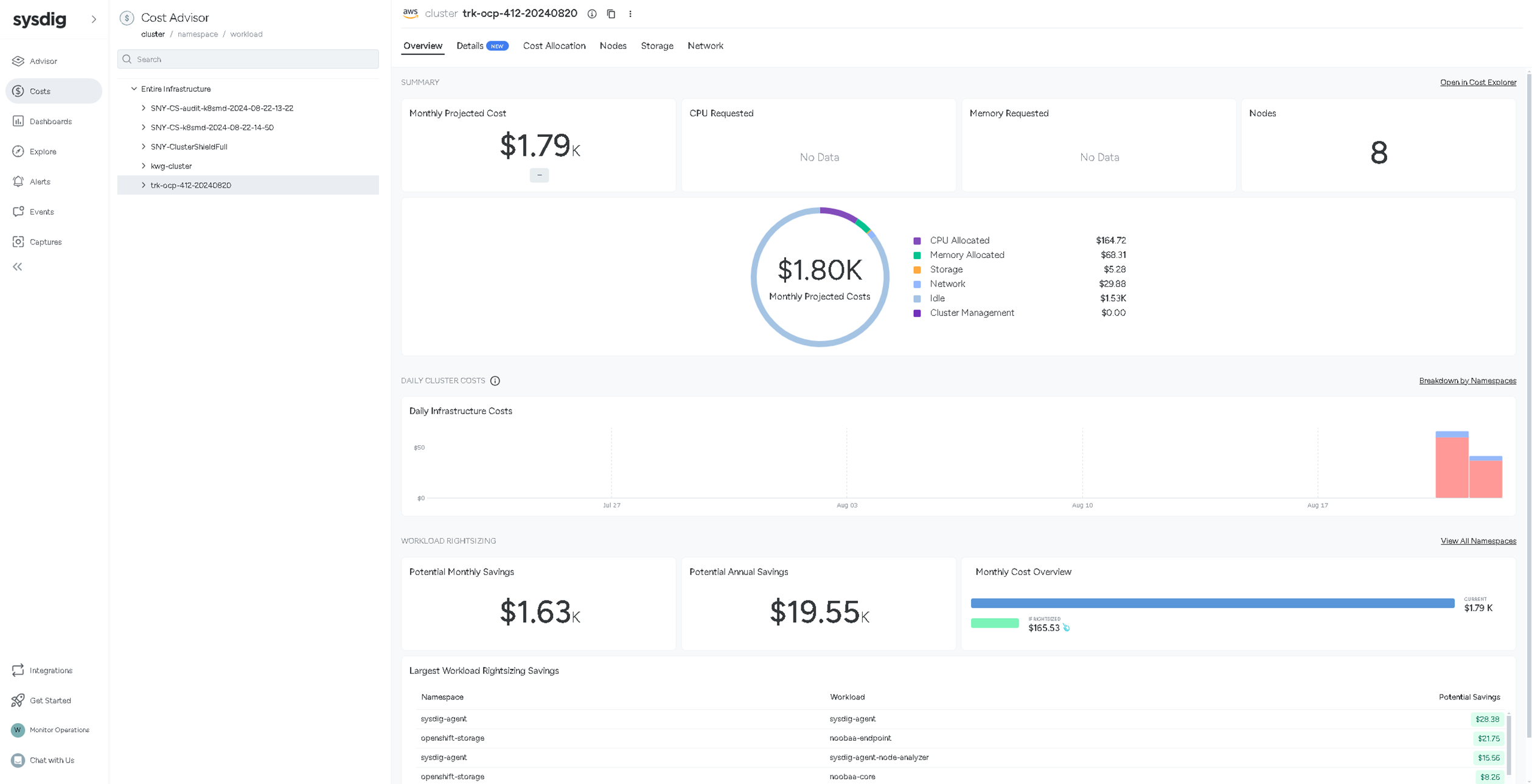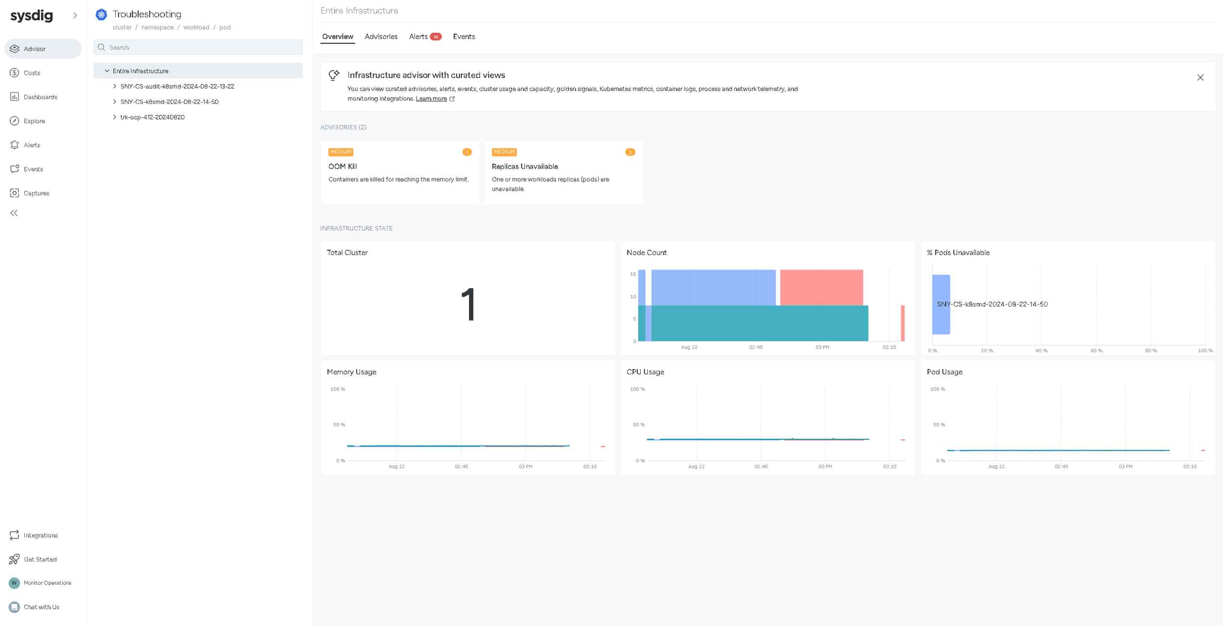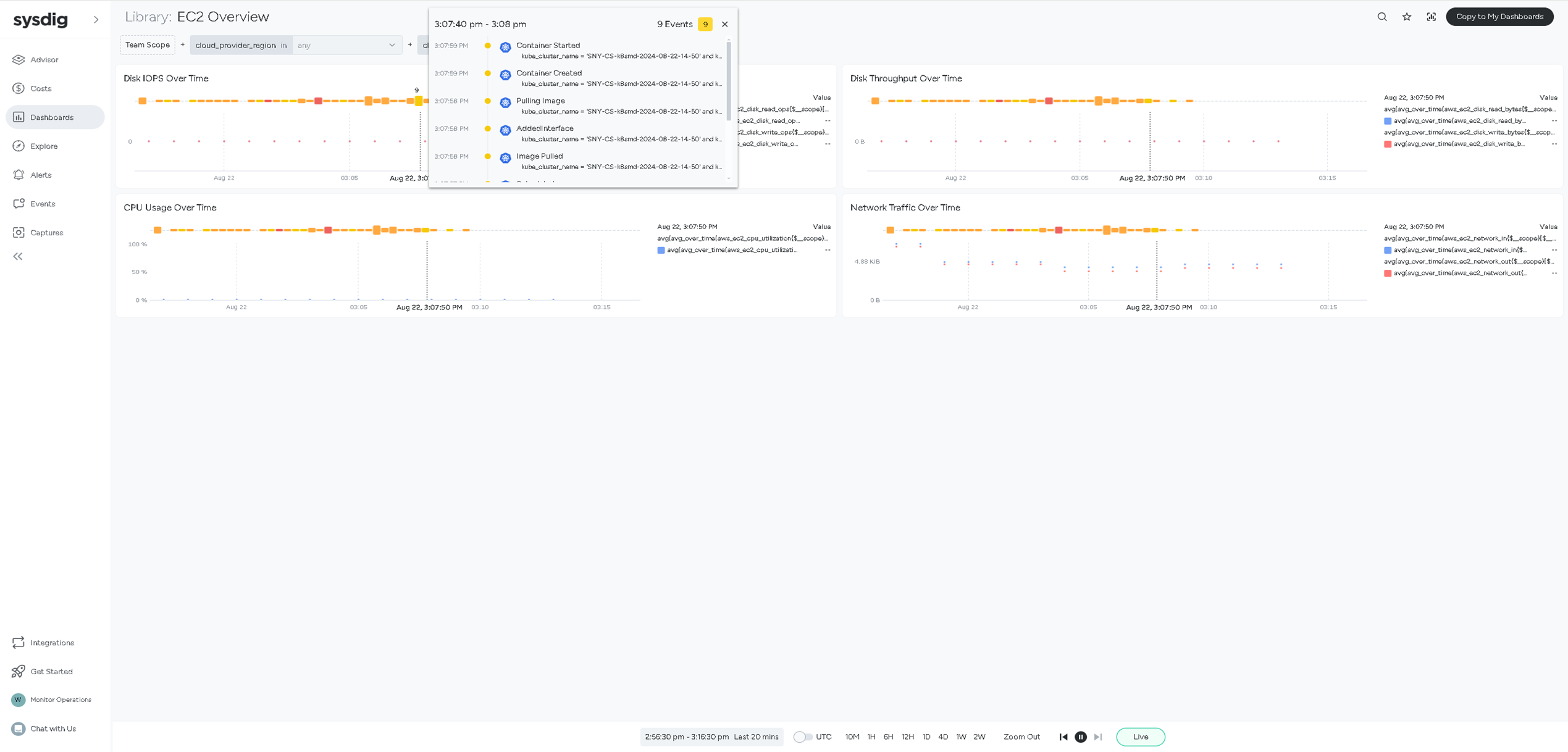Sysdig Monitorは、複数のクラウド環境を統合したKubernetesクラスタおよびコンテナのヘルスチェック、リスク・マネージメント、マイクロサービスのパフォーマンス管理を実現します
