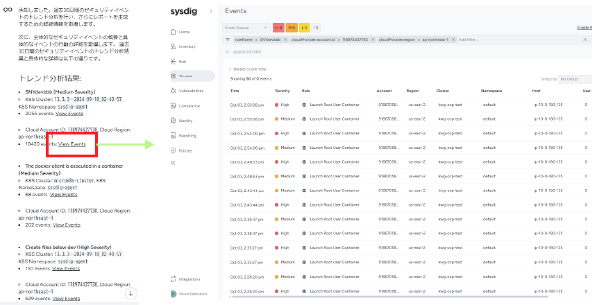 Sysdig Sageが作った過去30日間のセキュリティイベントのトレンド分析結果