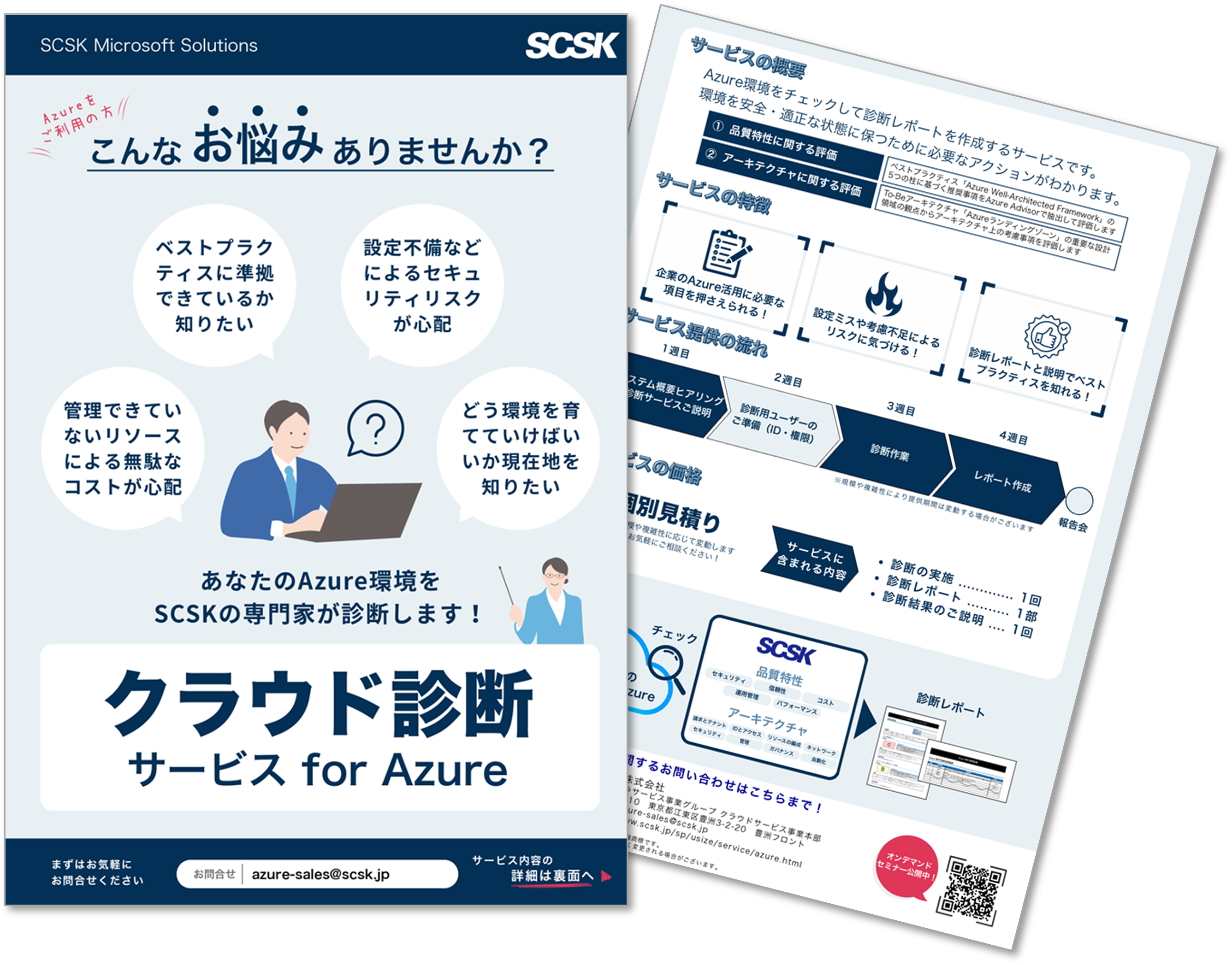 Azure AdvisorとWell-Architected Frameworkに基づき、ご利用中のAzure環境が適正か診断します。 企業がAzure上にシステムを構築する際に外せないポイントを網羅した診断項目をもとに、お客様のAzure環境を診断し、レポートの形で診断結果と対策をご提案します。