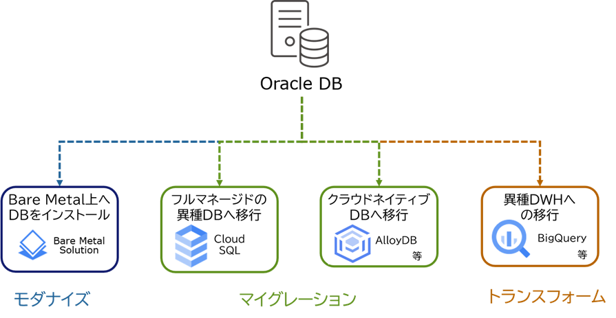 単純なマイグレーションから、フルマネージドDBへのモダナイズ、クラウドネイティブDBへのトランスフォームまで、Google Cloud へのデータ移行を実現します。