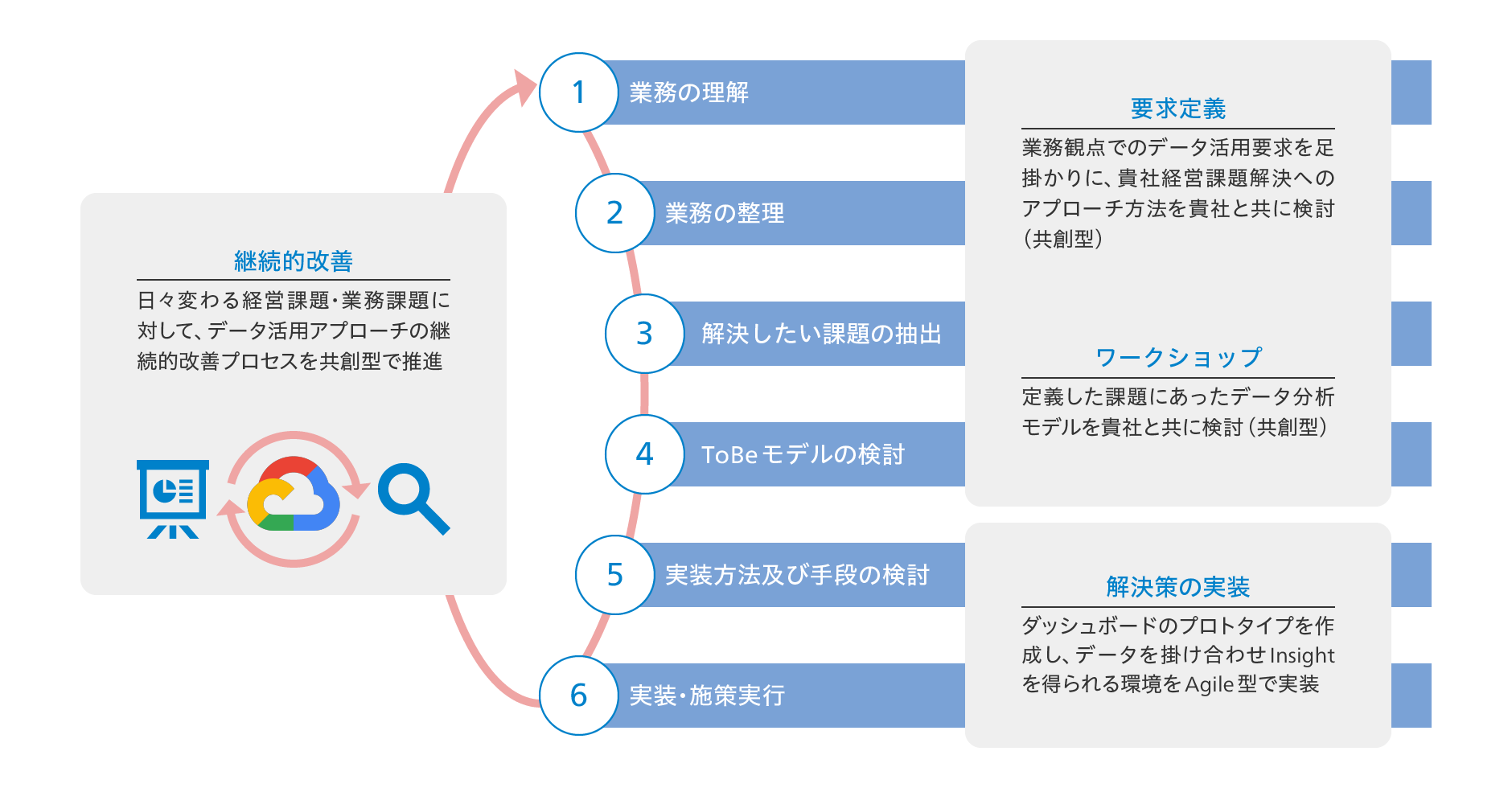 ビジネス課題の抽出から、データ分析モデルの検討、施策実行までご支援させて頂きます。