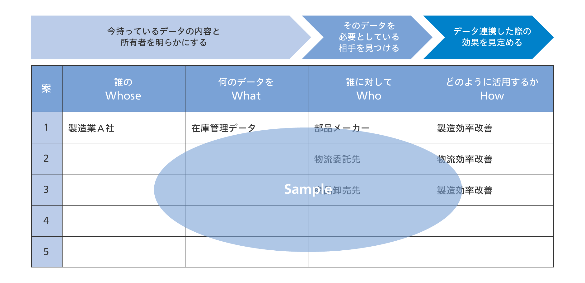 フォーマットに沿って、お客様にあったデータ活用モデルの検討をご支援させて頂きます。
