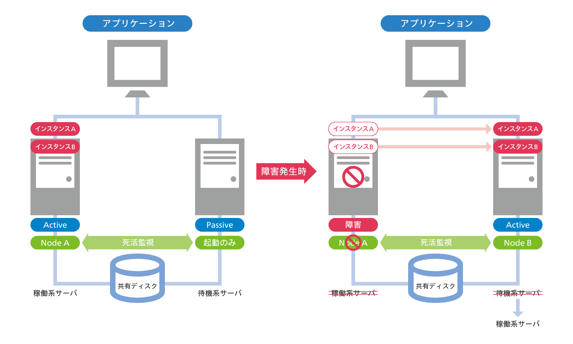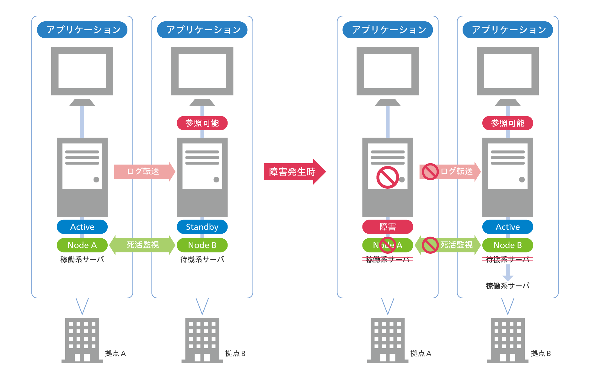 サーバ障害時もトランザクションの一貫性を維持することができる選択肢となります。シングル構成よりも可用性を向上させたい場合や障害時に