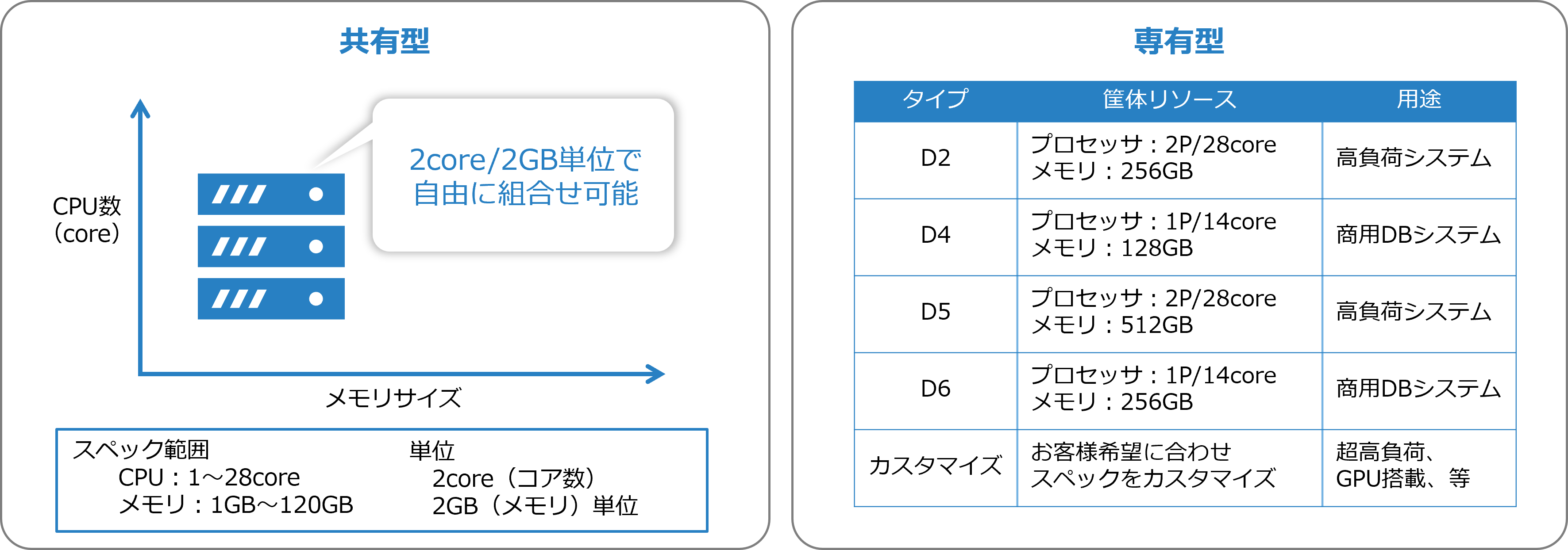 インフラリソースを専有する「専有型」は、搭載CPU数により課金される商用DBのライセンス費用を低減したい・