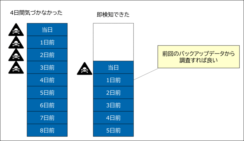 そのため、復旧する際にはランサムウェアによる攻撃を受けていない安全なバックアップデータを特定する必要があります。