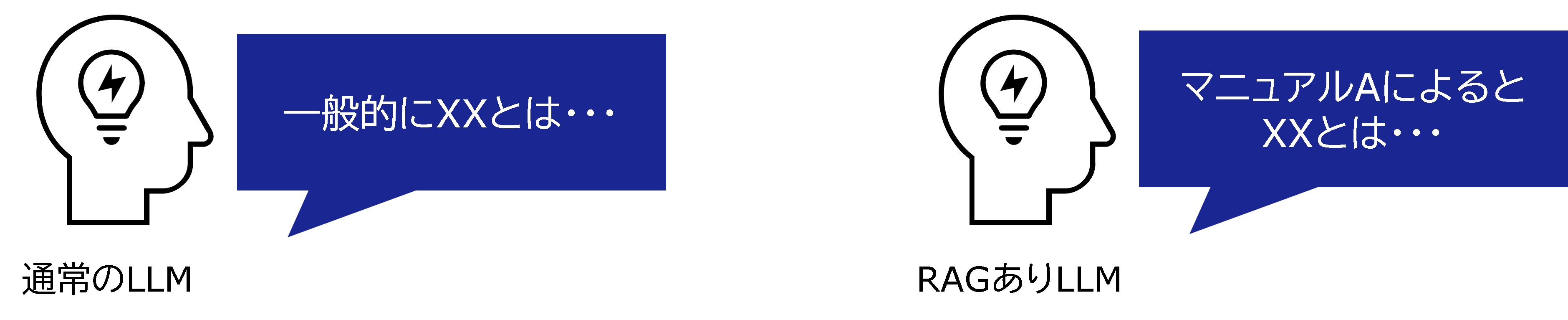 この比較からわかるように、RAGを活用することで、LLMは「一般的な回答」に留まらず、「社内文書に基づいた、具体的で精度の高い回答」が可能となります。これは、顧客満足度の向上や、社内業務の効率化に直結する大きなメリットです。