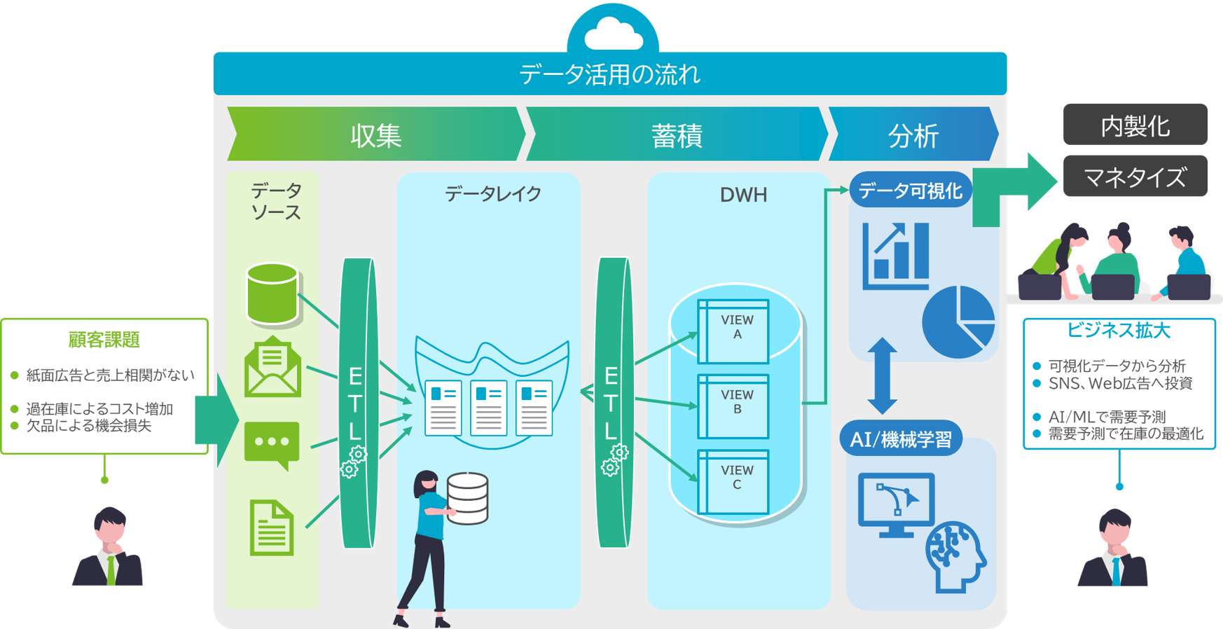 - DX推進が必要なことは分かるが、自社データの活用方法が分からない。